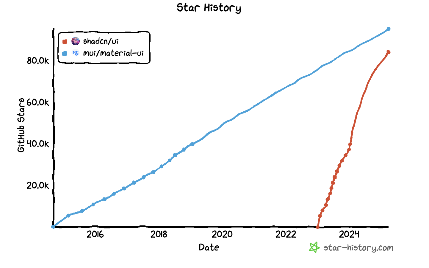 Shadcn is one of the fastest growing Github projects of all-time. At the time of writing, it has more than 84k stars.